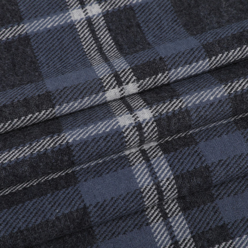 Dubbelsidig jacquard mjuk och bekväm ullsilkplädet stickat tyg är tillverkat av utvalda råvaror genom fin proportionering och avancerad teknik. Tygkompositionen är 50% ull, 30% spunnet siden och 20% bomull. Detta vetenskapliga förhållande säkerställer att tyget upprätthåller god värmeisoleringsprestanda samtidigt som den har god andningsförmåga och komfort. Som huvudkomponenten i tyget ger ull god värme och andningsförmåga, vilket gör att tyget kan förbli bekväma i kalla miljöer. Tillsatsen av spunnet siden förbättrar tygets glans och jämnhet och samtidigt förbättrar tygets mjukhet och hudvänlighet, vilket gör att bärupplevelsen trevligare. Tillsatsen av bomull förbättrar ytterligare tygets hållbarhet och hygroskopicitet, vilket säkerställer att det förblir torrt och bekvämt efter långvarigt slitage. Den dubbelsidiga Jacquard-processen är en höjdpunkt i detta tyg. Genom precisionsvävningsteknik uppvisar både fram- och baksidan ett känsligt och enhetligt rutigt mönster, vilket inte bara förbättrar den visuella effekten av tyget utan också ökar tygets skiktning och tredimensionalitet. Denna unika process gör det möjligt för tyget att visa rika ljus- och skuggförändringar när de utsätts för ljus, vilket förbättrar modet och prydnadsvärde på tyget.