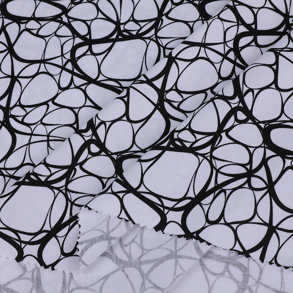 Digital tryckning La Sticked Interlock Cotton Tyg som är lämpligt för kvinnor antar dubbelsidig stickningsteknik, och båda sidor presenterar fin och enhetlig struktur, vilket säkerställer klädkvalitetens högkvalitativa utseende. Samtidigt ger bomullskomponenten tyget god fuktabsorption, andningsförmåga och hudvänlighet, vilket kan hålla bäraren bekväm även i miljöer med högt temperatur. När det gäller mönster och färg antar detta tyg avancerad digital tryckteknik. Denna teknik använder högprecisionsmunstycken för att exakt skriva ut utsökta mönster på tygets yta, med ljusa färger och rika mönsterdetaljer, vilket effektivt förbättrar klädernas visuella tilltalande. Dessutom säkerställer digital tryckteknologi också mönsterens hållbarhet och stabilitet. Även efter flera tvättningar förblir mönstret ljust och bleknar inte lätt eller deformeras. När det gäller fysiska egenskaper ger stickprocessen tyget måttlig elasticitet, som lätt kan anpassa sig till olika kroppskurvor och säkerställa komfort och passform när du bär. Samtidigt har tyget också bra rynkmotstånd och slitstyrka, är inte lätt att pilla eller deformation och förlänger klädernas livslängd. Detta tyg är lämpligt för en mängd olika kvinnokläderstilar, som klänningar, t-shirts, toppar, etc., som kan tillgodose bärbehovet i olika tillfällen. Oavsett om det är daglig fritid, pendling till jobbet eller deltar i fester och evenemang, kan det visa bärarens eleganta temperament och modesmak.