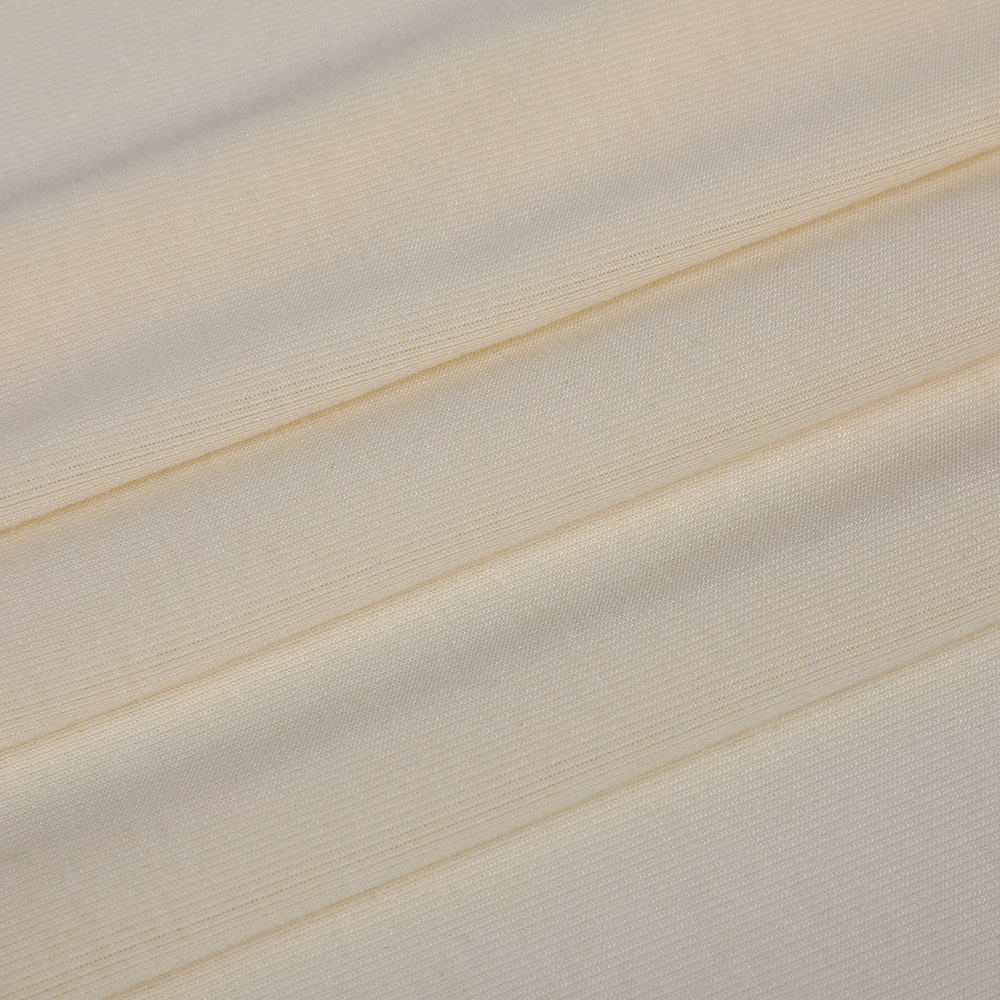 Mjuka hudvänliga ribbade spandex inre slitage stickade kvinnokläder för kvinnor, designade för kvinnor, underkläder stickat tyg antar avancerad blandningsteknik och blandar noggrant 86% tencel, 5% silke, 5% kashmir och 4% spandex för att ge god funktionalitet och komfort. Tencel är den huvudsakliga fibern och står för upp till 86%. Med sina miljövänliga egenskaper härrörande från naturen, god andningsförmåga och god fuktabsorption säkerställer det tygets lätthet och torrhet. Den naturliga glansen och den mjuka känslan av Tencel -fiber ger en unik struktur och visuell njutning till underklädertyget. Silk står för 5%, och med sin känsliga fiberstruktur och god jämnhet förbättrar den ytterligare den lyxiga beröringen och bärupplevelsen av tyget. Den goda fuktabsorptionen och andningsförmågan hos siden hjälper till att hålla huden torr och bekväm och hålla huden fräsch även efter långvarig slitage. Kashmir står för 5%, och med sin naturliga värmehållning och mjuka beröring ger den god värmehållning för underkläderstyger. Finheten och mjukheten hos kashmirfiber kan effektivt minska friktionen med huden och förbättra komforten och nöjet att bära. Spandex står för 4%, och med sin goda elasticitet och återhämtning ger det tyget god duktilitet och anpassningsförmåga. Tillägget av spandex gör att tyget kan förbli mjukt och bekvämt samtidigt som man tillgodoser behoven hos olika kroppsformer och aktiviteter, vilket ger allround frihet och flexibilitet.