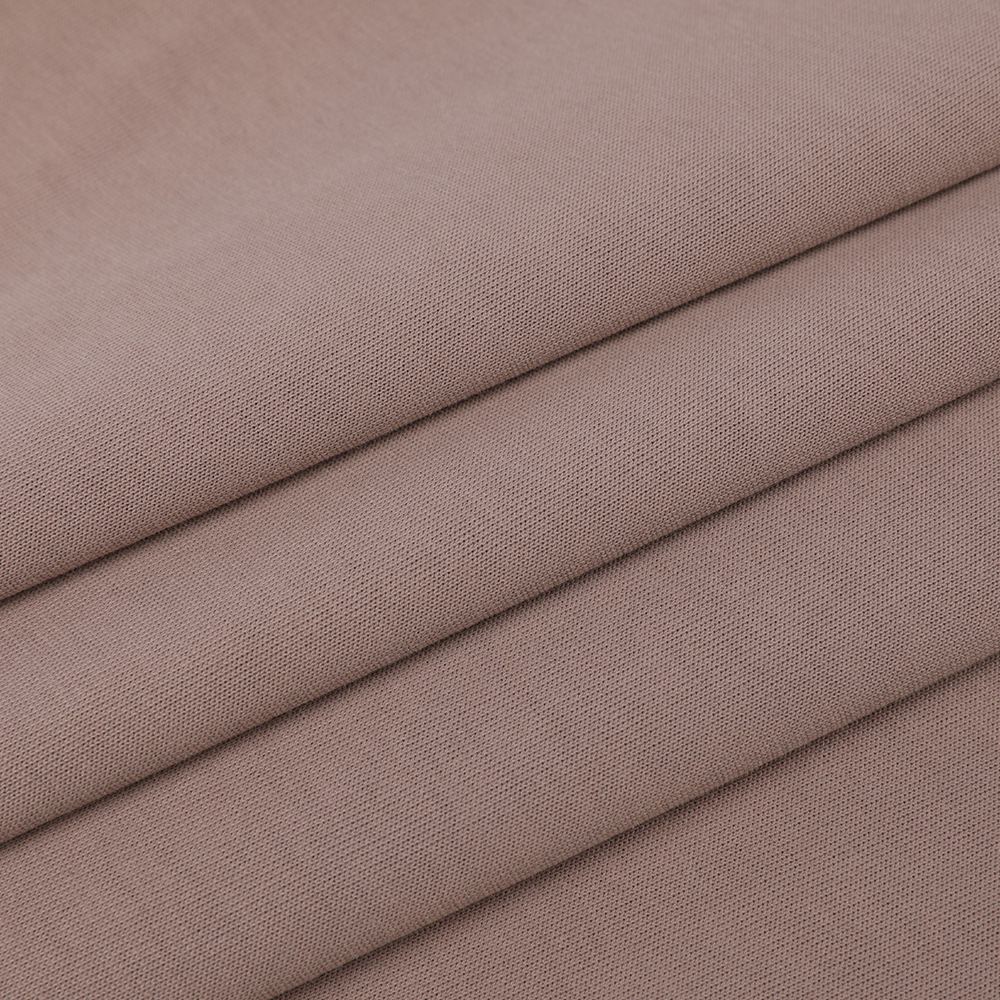 Andningsbara miljövänlig bomullsvätskevätska ammoniak Svett T-shirt Tyg använder utvald miljövänlig bomull som råmaterial och använder avancerad flytande ammoniakfinish-teknik för att försiktigt skapa ett svett T-shirt-tyg med god andningsförmåga. Tyget styrs från källan för att säkerställa hållbarhet och miljövänlighet i bomullsfiber, i linje med moderna konsumenters strävan efter miljöskyddskoncept. Applicering av flytande ammoniakbehandlingsteknik är nyckeln till att förbättra tygprestanda. Genom egenskaperna hos flytande ammoniakmolekyler som penetrerar djupt in i fibern förbättras strukturen på bomullsfiber effektivt, vilket ger tyget en mjukare, smidigare och mer elastisk struktur. Samtidigt förbättrar flytande ammoniakbehandling avsevärt andningsfuktens absorption och svettförmågan hos tyget. Även i miljöer med hög temperatur och hög luftfuktighet kan svett snabbt exporteras till det yttre skiktet av kläder och avdunstas snabbt, vilket effektivt håller huden torr och förbättrar att bära komfort. Tyget har också goda värmeledningsegenskaper och kan justera kroppstemperaturen enligt omgivningstemperaturen för att uppnå en bekväm bärupplevelse under alla årstider. Dess känsliga beröring och god hållbarhet gör att tyget kan upprätthålla god mjukhet och färgstabilitet efter flera tvättar.